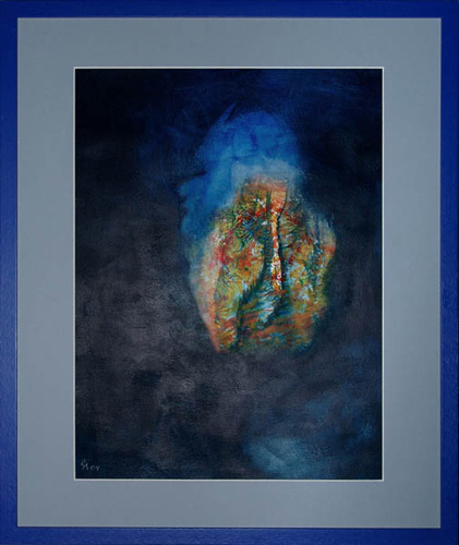 Acryl auf Karton, Bildmaße 40 x 50cm Holzrahmen, hinter Glas.