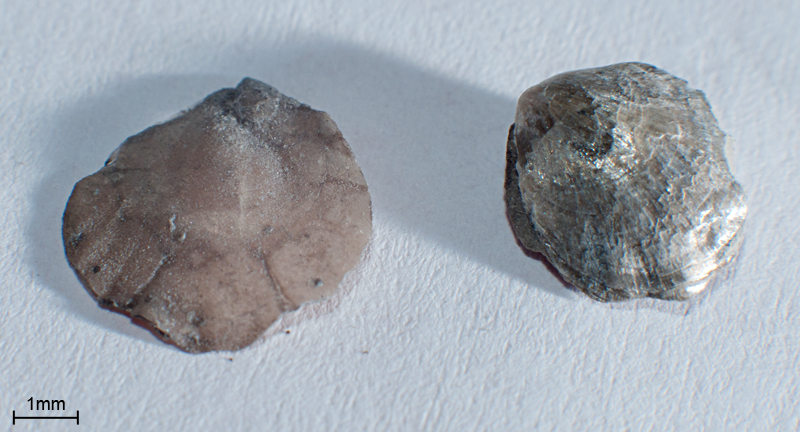 links durchscheinend - mini Muschel - rechts mit Perlmuttglanz