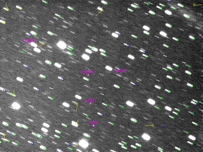 Das Entdeckungsfoto besteht aus 20 Einzelaufnahmen mit je 120sek Belichtung. Neben 3 bekannten Objekten wurden auf dieser Aufnahme 2 bis dato unbekannte Objekte entdeckt. Das in der unteren Bildmitte befindliche Objekt Api077 wurde zuerst temporär mit 2007 RH14 und später endgültig mit 236810 "Rutten" bezeichnet. |